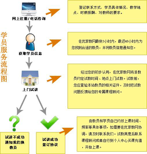 2、电话确认:我们在收到学员信息后的二个工作日内,将对您的信息予以电话确认,并选定合适教员商议具体试讲时间。